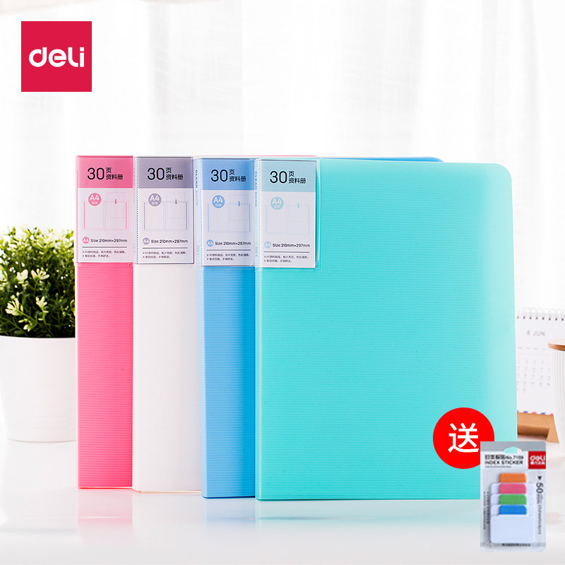 Deli 5065PP color A4 data book paper bag transparent inset student learning office inset file storage