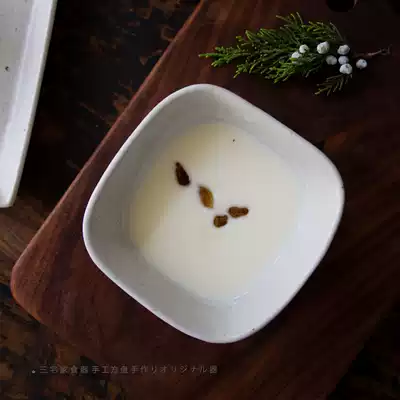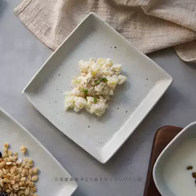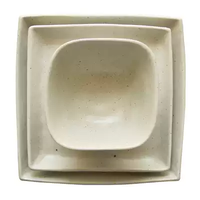 New white handmade matte coarse pottery square dish bowl set Jingdezhen ceramic plate Japanese soup bowl