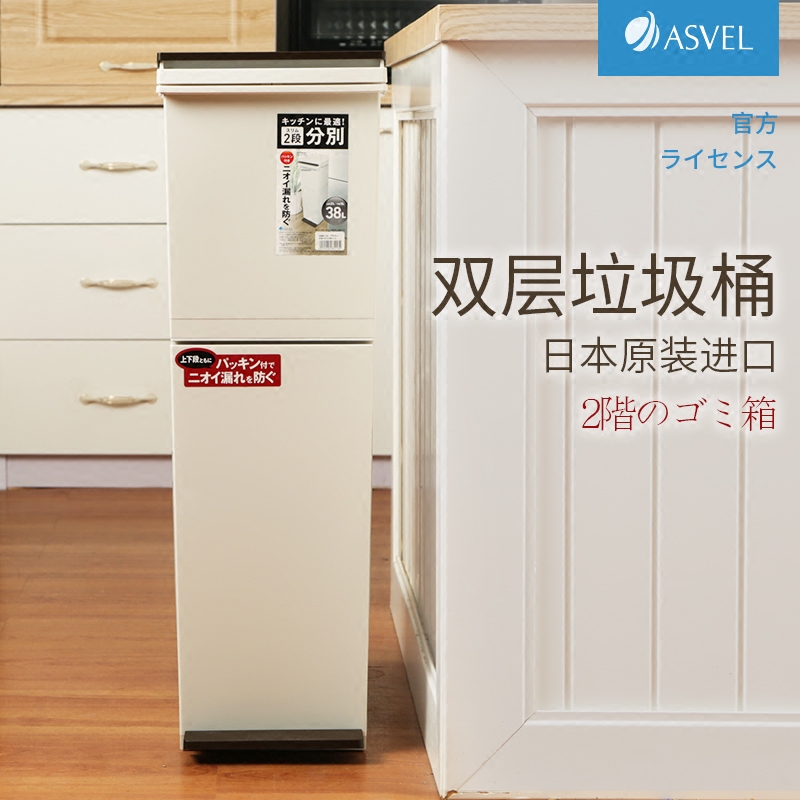 Japan imported ASVEL kitchen sorting garbage can household double-layer large dry and wet separation light luxury large garbage bin