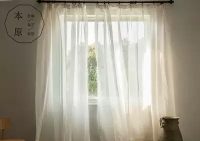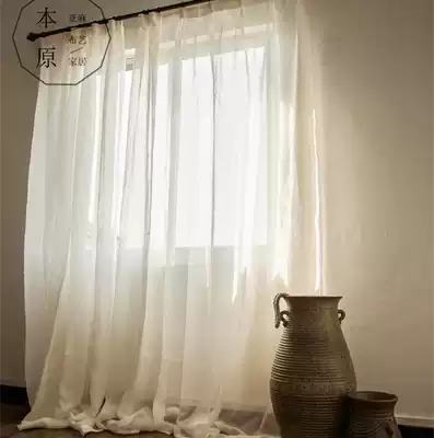 Pure linen curtains This white linen yarn linen curtain French greenhouse living room floor-to-ceiling formaldehyde-free yarn curtain