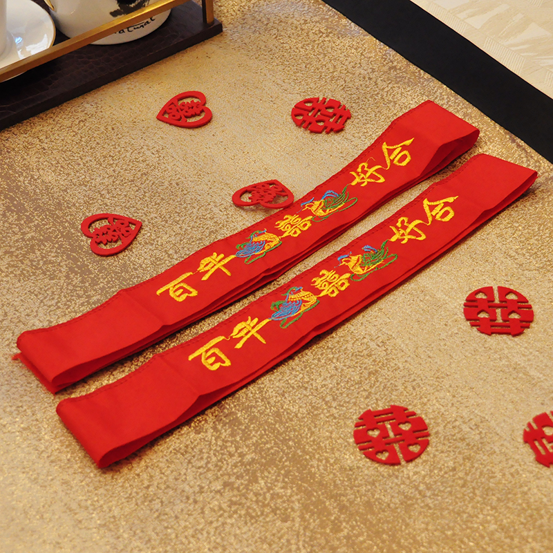 Newcomer Wedding Wedding Celebration Items Cloth Art Groom Bridal Red Belt Chinese Fabric Belt 2 Accompanied Dowry Wedding Wedding
