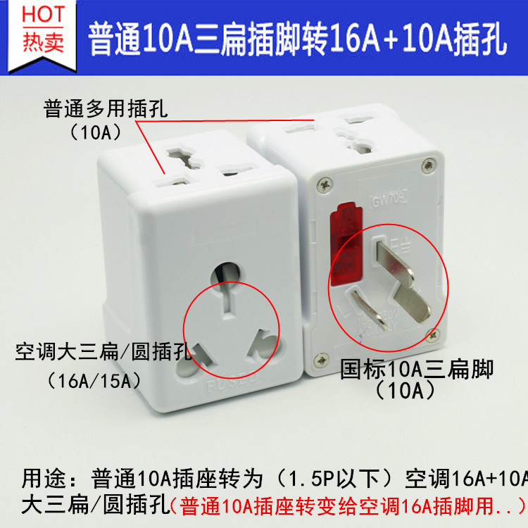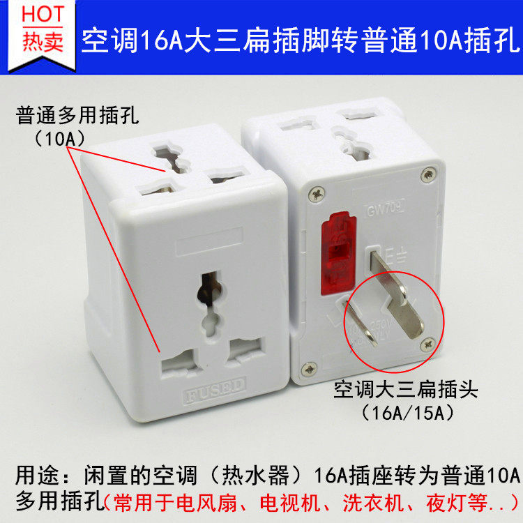 Multifunction conversion socket One plug in three-use converter 16A 10A 10A air conditioning 10A 10A 16A conversion plug