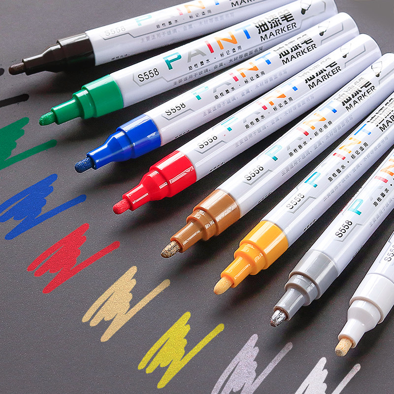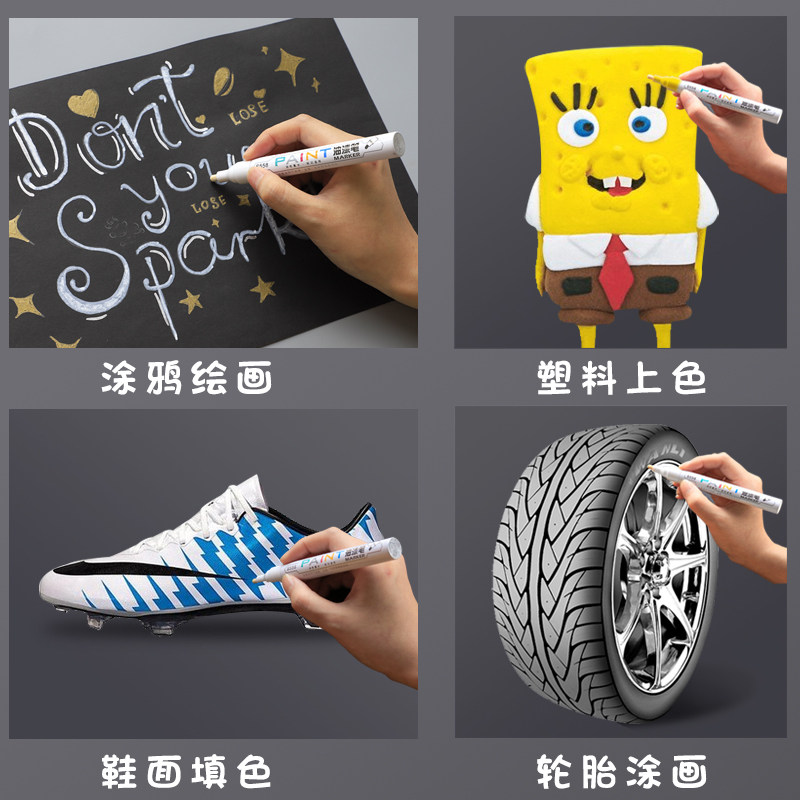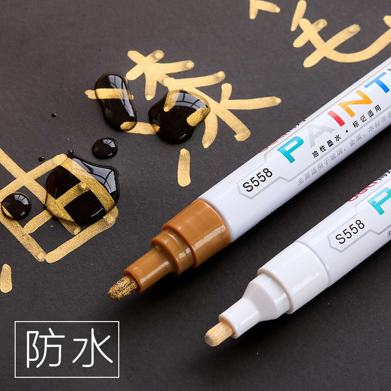 Powerful paint pen oily marker tire white does not fade non-fading waterproof diy mark shoes special durable metal painting shoes car touch-up paint gold high-gloss permanent black paint