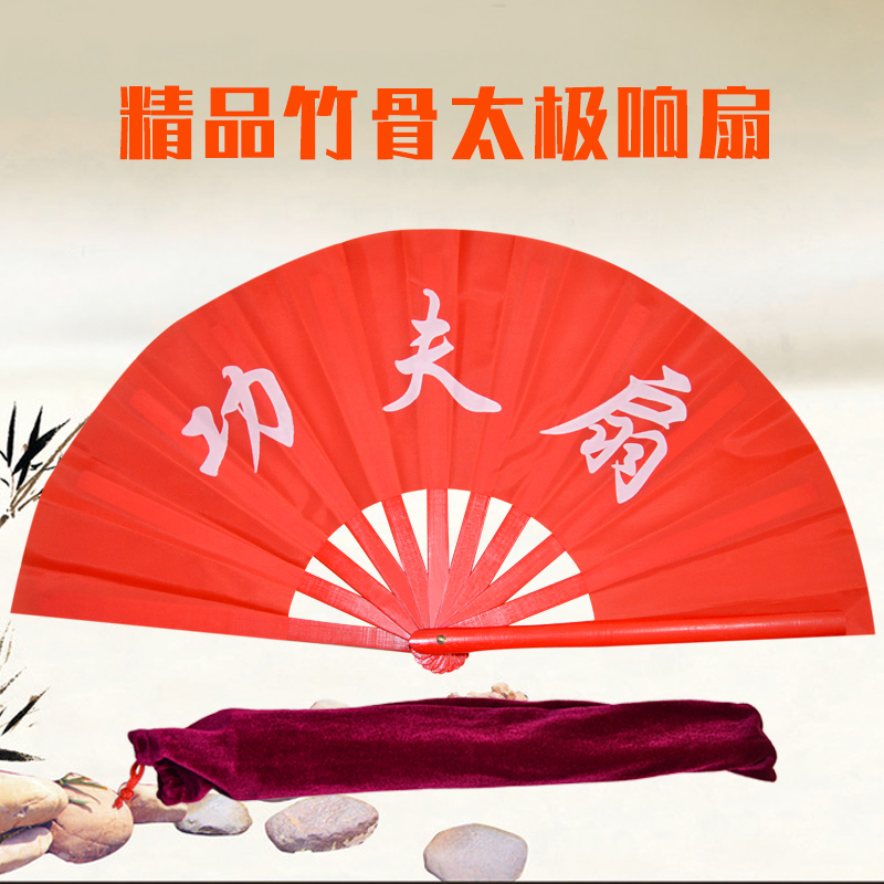 Children's 8-inch Tai Chi Fan Bamboo Bone Ring Fan Red Wordless Plain Group Performance Fan Wushu Kung Fu Fan Mulan Fan