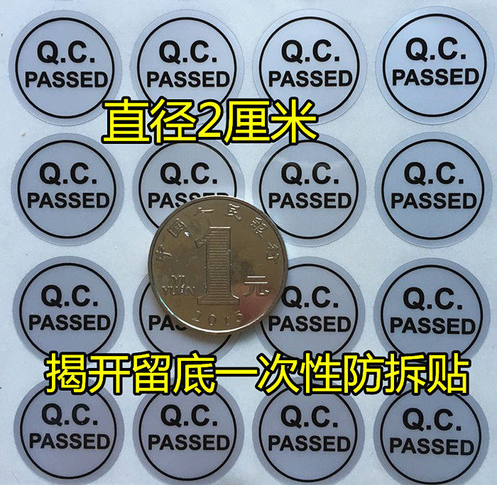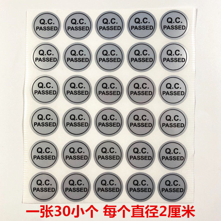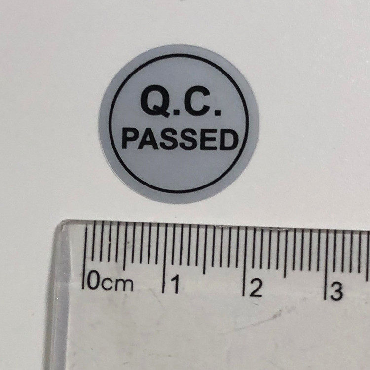 Matte silver waterproof QCpassed anti-tear closure sticker 2CM qualified QC disposable bottom print adhesive sticker 30 sticker