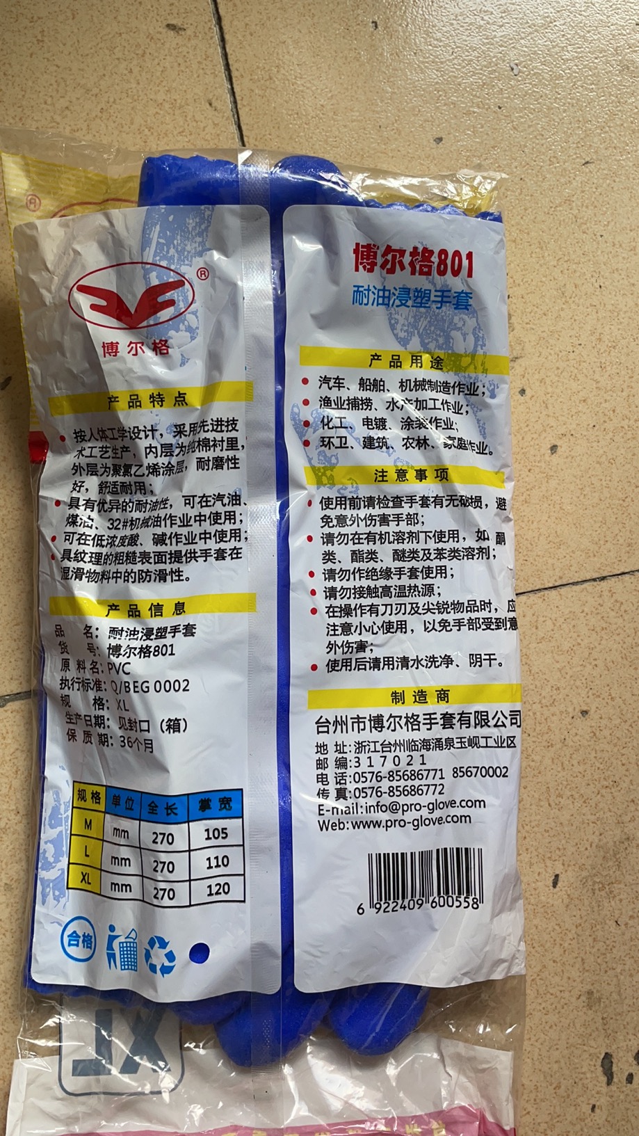 Oil-resistant gloves Bolger 801 waterproof gloves industrial acid-resistant alkali dip plastic rubber rubber wear-resistant construction site gloves