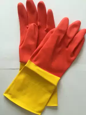 Qunsheng Feiyan two-color latex gloves waterproof non-slip household washing dishes cleaning gloves thickened rubber gloves
