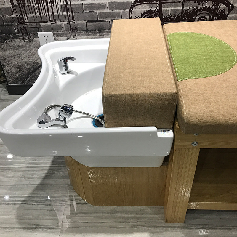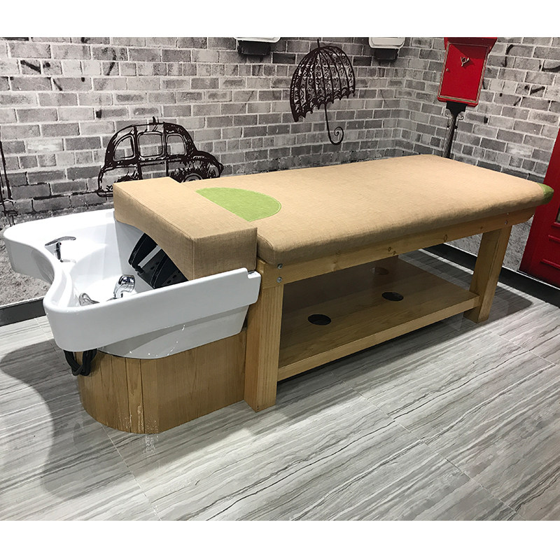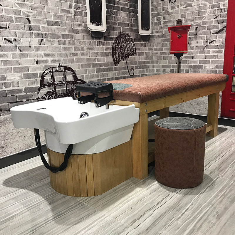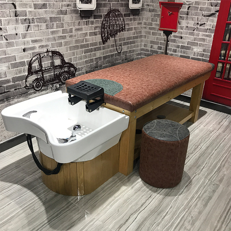 Solid Wood Shampoon Bed Hair Salon Special Tai Wash Bed Massage Bed Rational shop retro Ceramic Basin Wash Head Bed Hydrotherapy Bed