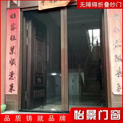 Factory direct white coffee invisible screen door removable and washless trackless barrier-free folding side pull anti-mosquito insect and fly