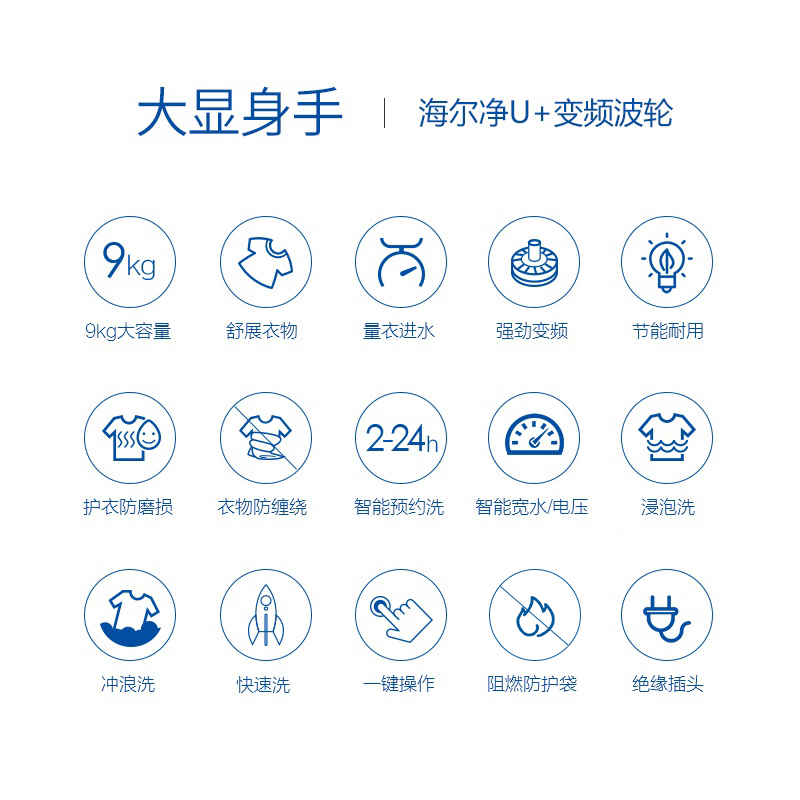 Haier wave wheel washing machine automatic household 9 kg direct drive frequency conversion elution drying small EB90BM39TH