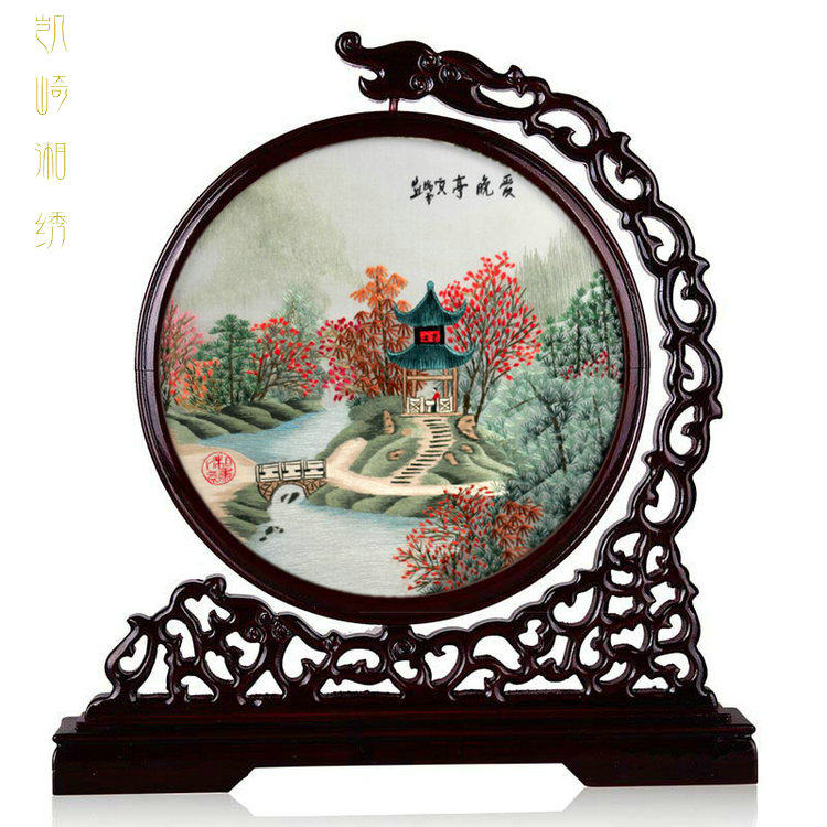 Hunan Special Production Love Evening Kiosk Boutique Bifacial Embroidered Pure Handmade Xiangxiu Embroidered Pendulum with Tabletop Handicraft for the Old Outer-Taobao