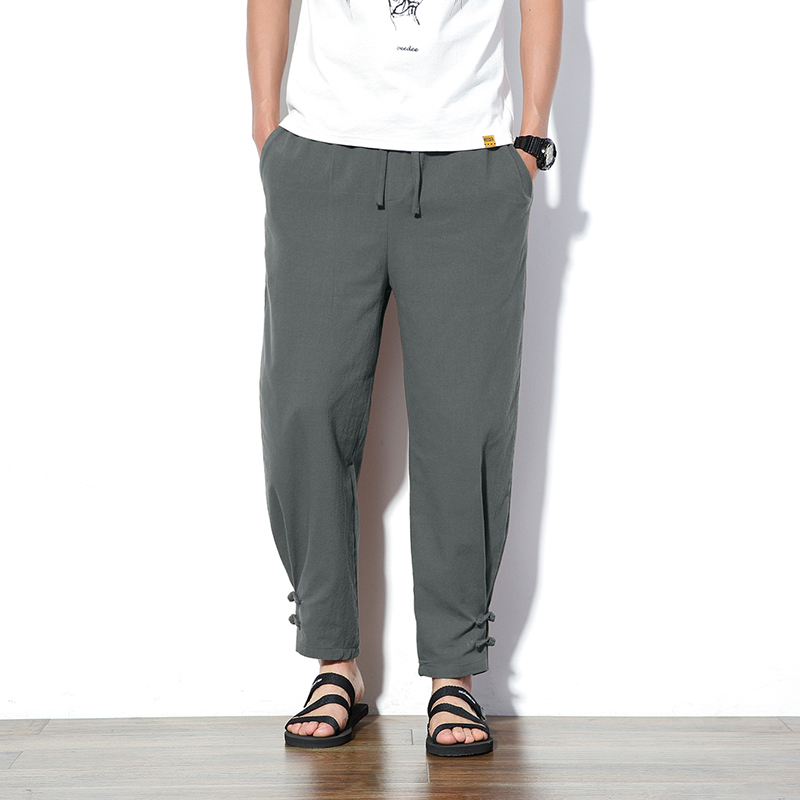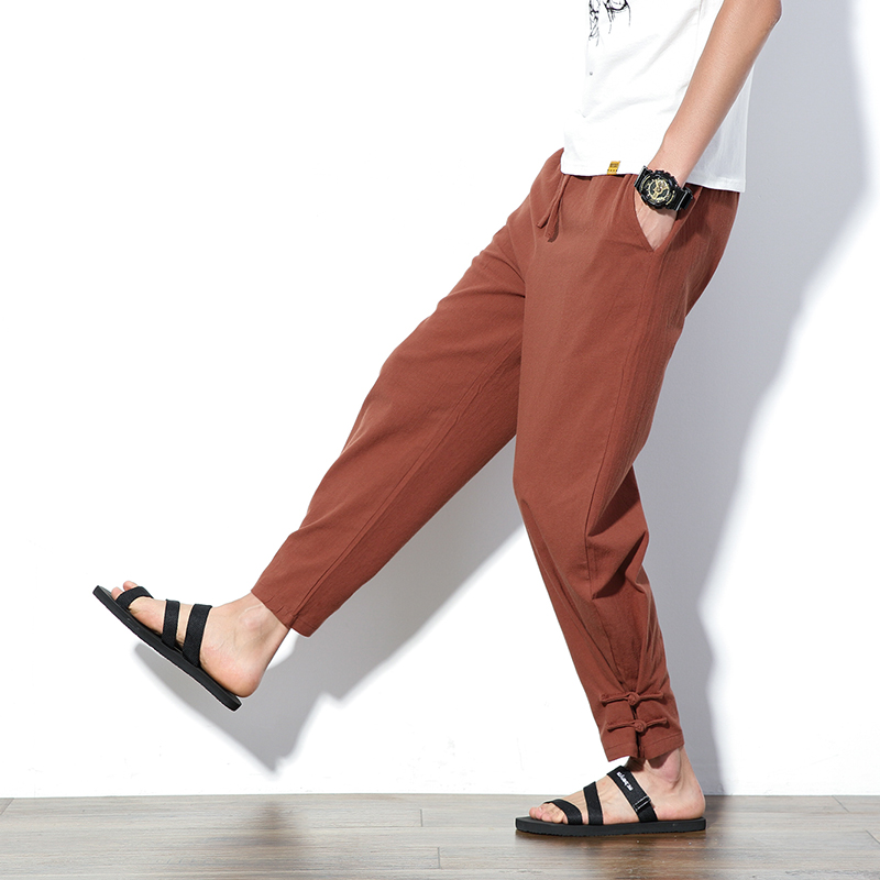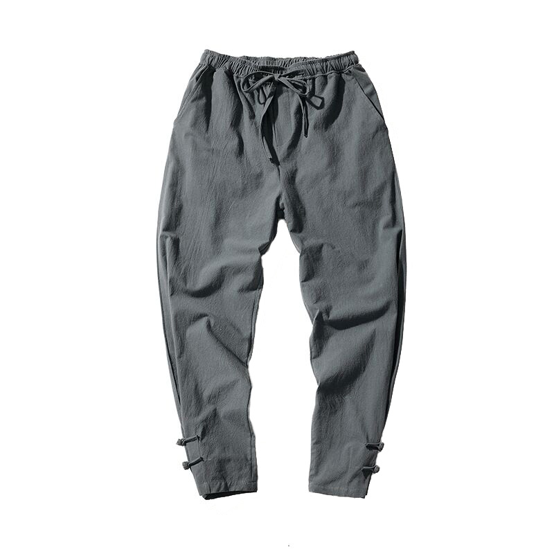 Chinese style ancient costume retro lay buckle legged pants youth Chinese style cotton linen pants Tang suit casual loose long trousers
