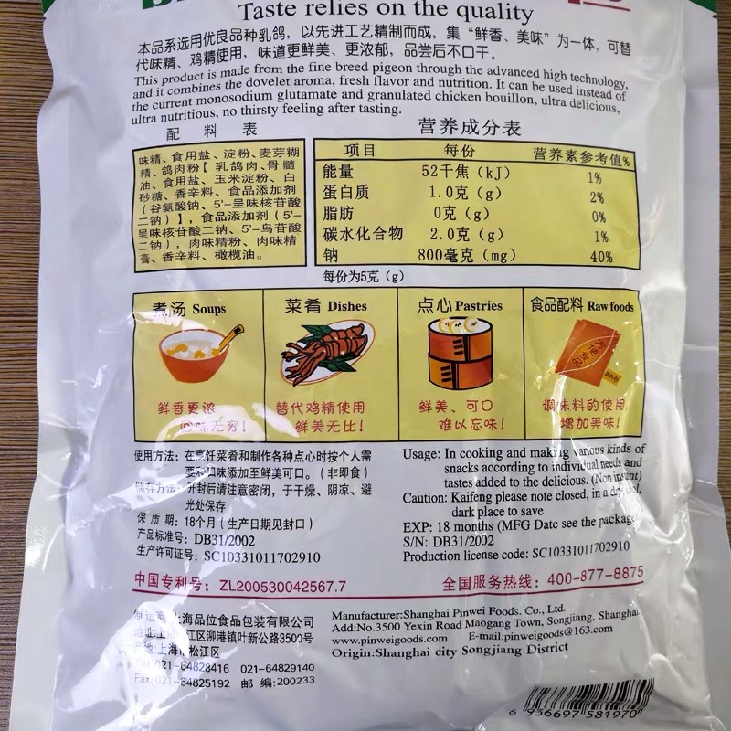 Whole box Shanghai grade pigeon essence 454g * 20 packs of burnt vegetable toning with fresh and high fresh chicken essence seasonings