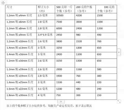 1 2 thick x4mm length (200g gold) 1 2 thick x5mm length (200g gold) 1 2 thick x6mm length (200g gold) 1 2 thick x8