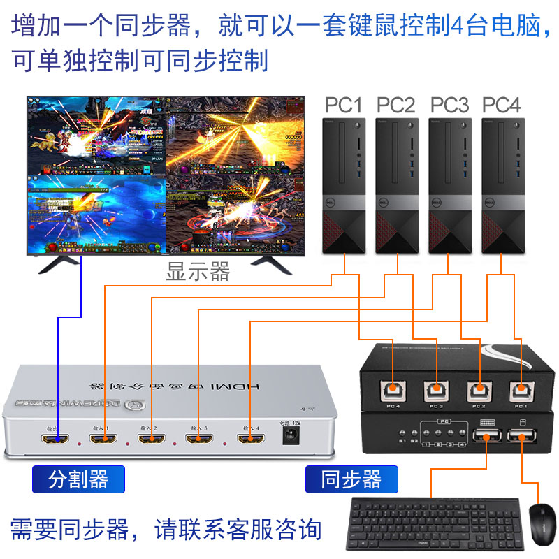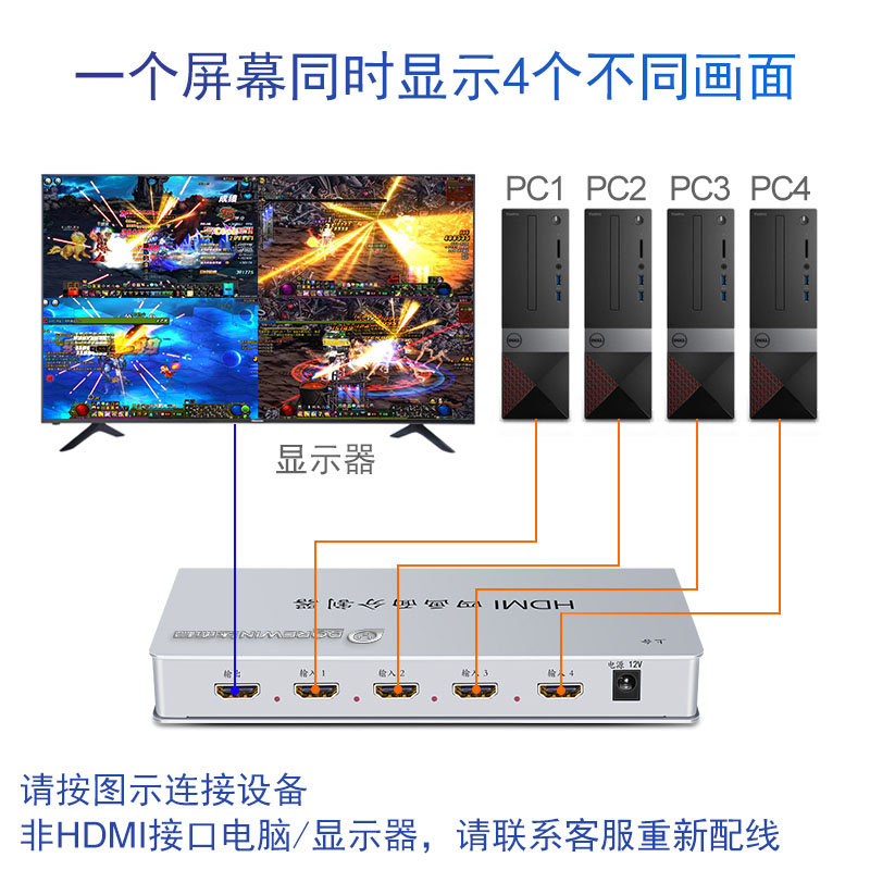 HDMI splitter Four-in-one-out splitter One-in-four DNF dungeons and warriors move bricks Computer four-screen screen divider 4-port monitoring display multi-screen