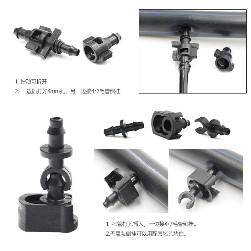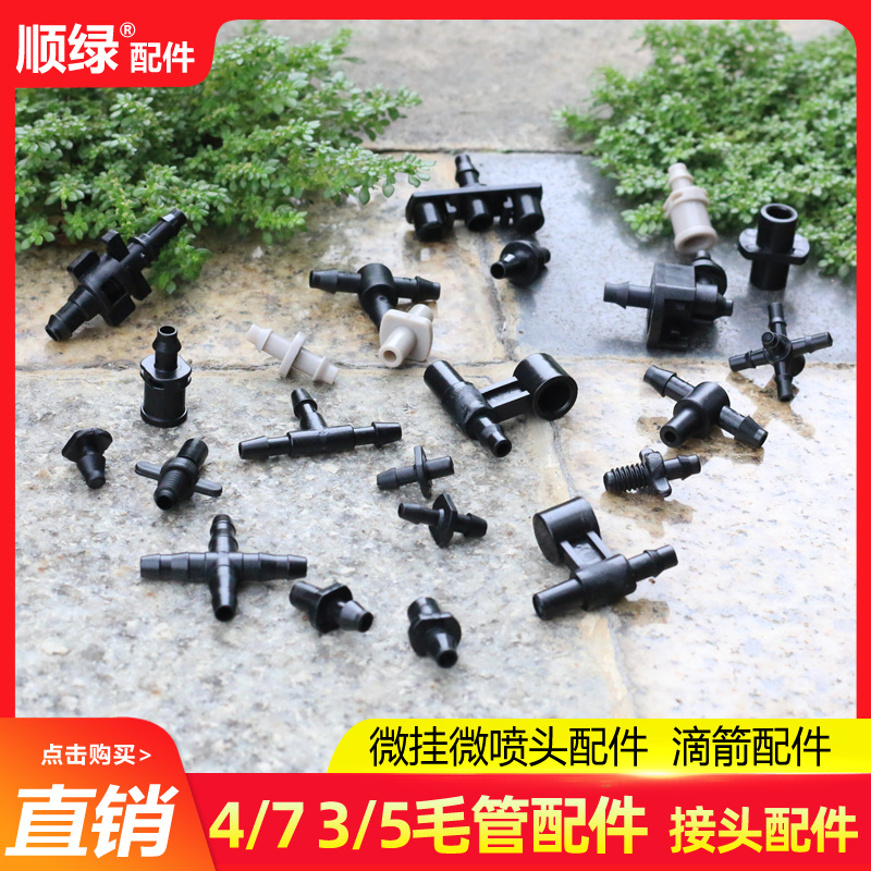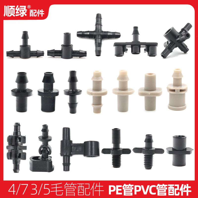 3 5 4 7 hair pipe fittings Straight-through three-way four-way sprinkler irrigation equipment micro-spray PE pipe anti-drip drip irrigation joint