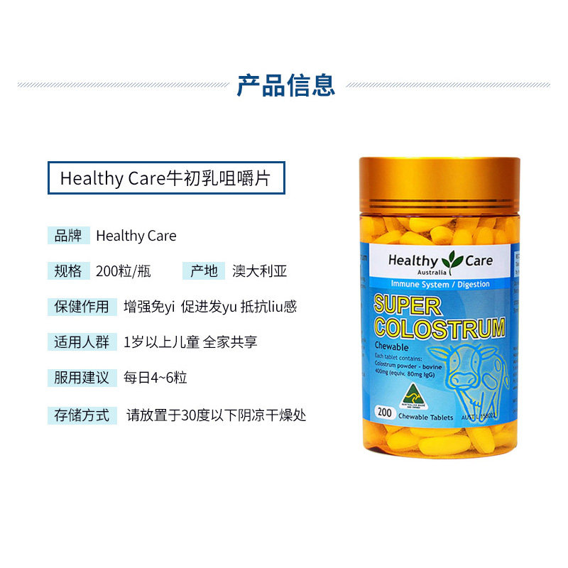 Australian pharmacy live broadcast purchase Healthy Care400MG 200 Colostrum Chewable Tablets