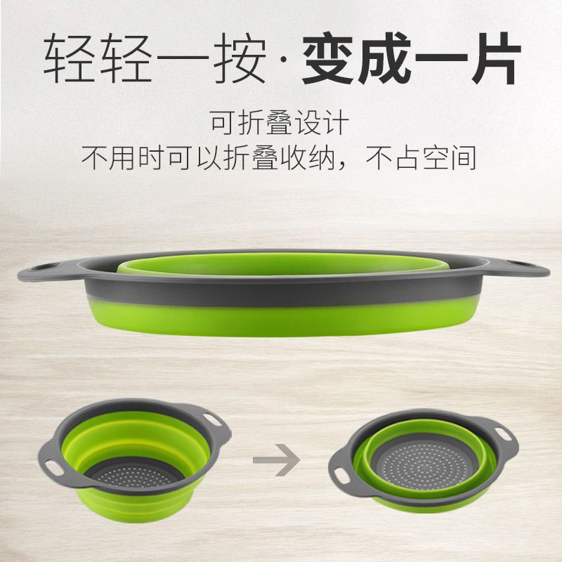 Round Travel Silicone Washing Fruit Plate Folding Outdoor Kitchen Draining Basket Set Portable Vegetable Basin