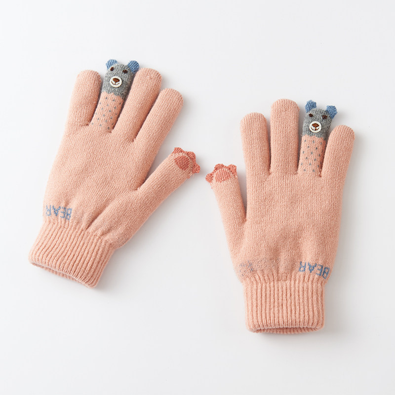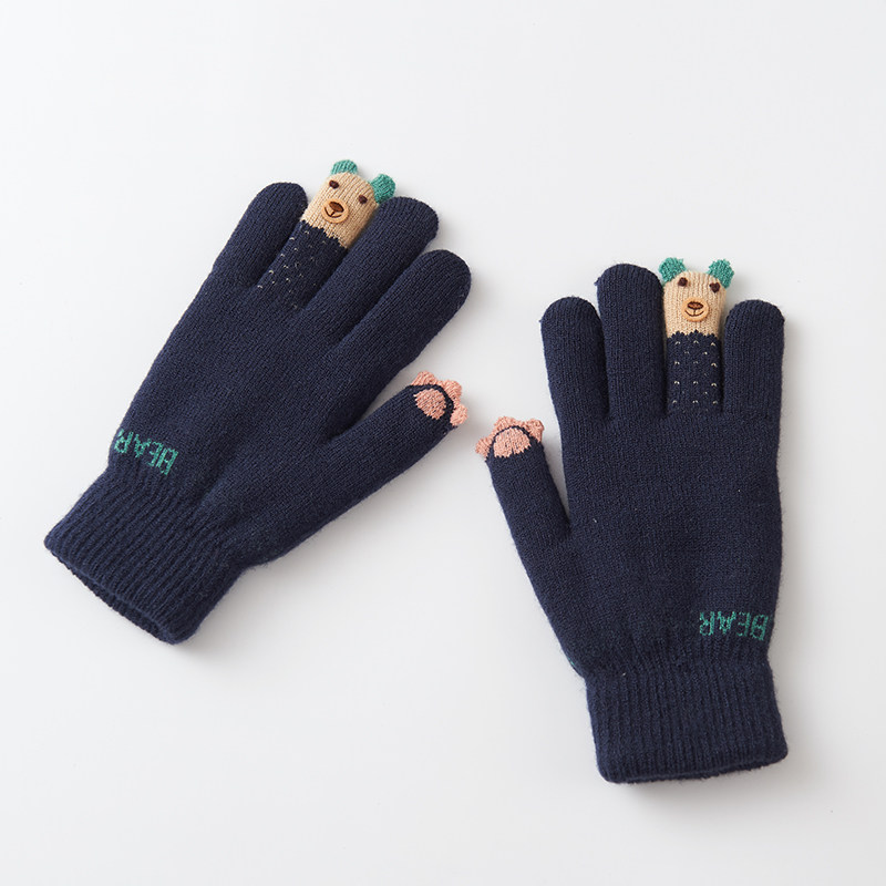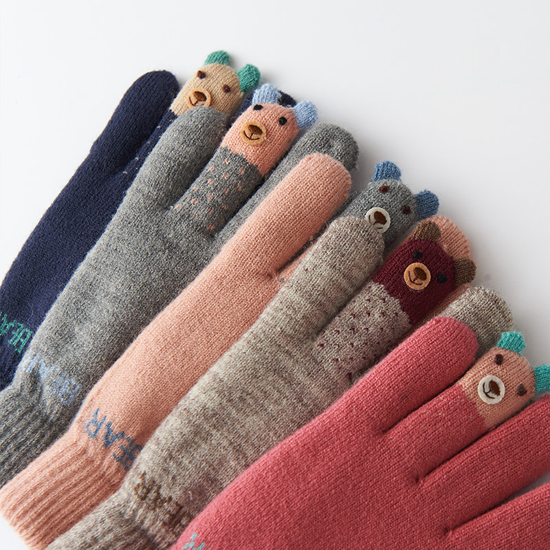 Bailiou fluff line gloves women's winter cute Korean cartoon student touch screen cotton gloves women's winter thickened warm