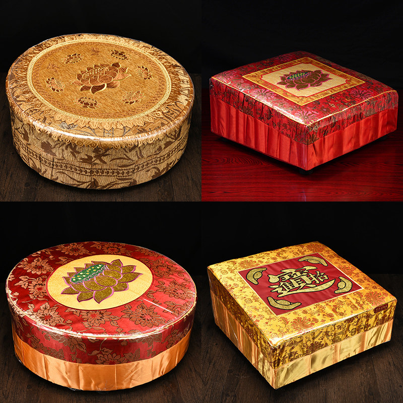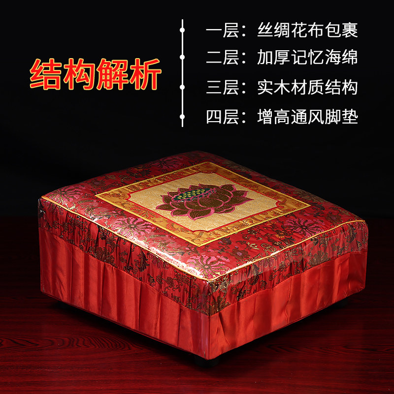 Embroidered lotus Lotus solid wood Baie Buddha cushion temple kowtow kneeling cushion for home thickening Buddha cushion kneecap square Baistool