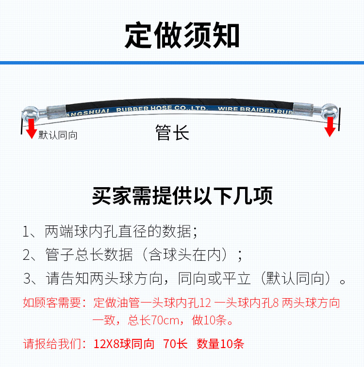 Specifications (material two ball length number) hydraulic wire 14 X14 40cm 1 hydraulic wire 14 X14 50cm 1 hydraulic steel wire