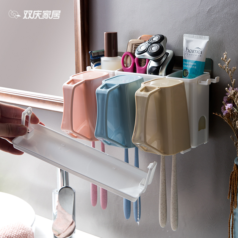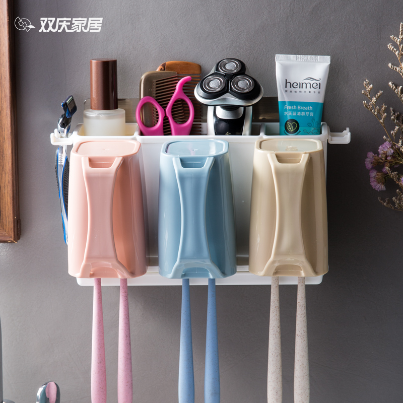 Toothbrush shelf Wall-suction creative mouthwash cup washing set Wall-mounted toothpaste tooth cleaning supplies shelf