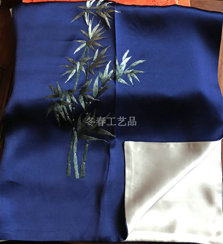 Men's real silk scarves pure handmade embroidered bamboo silk scarves upscale mulberry silk Su embroidered scarves business gifts