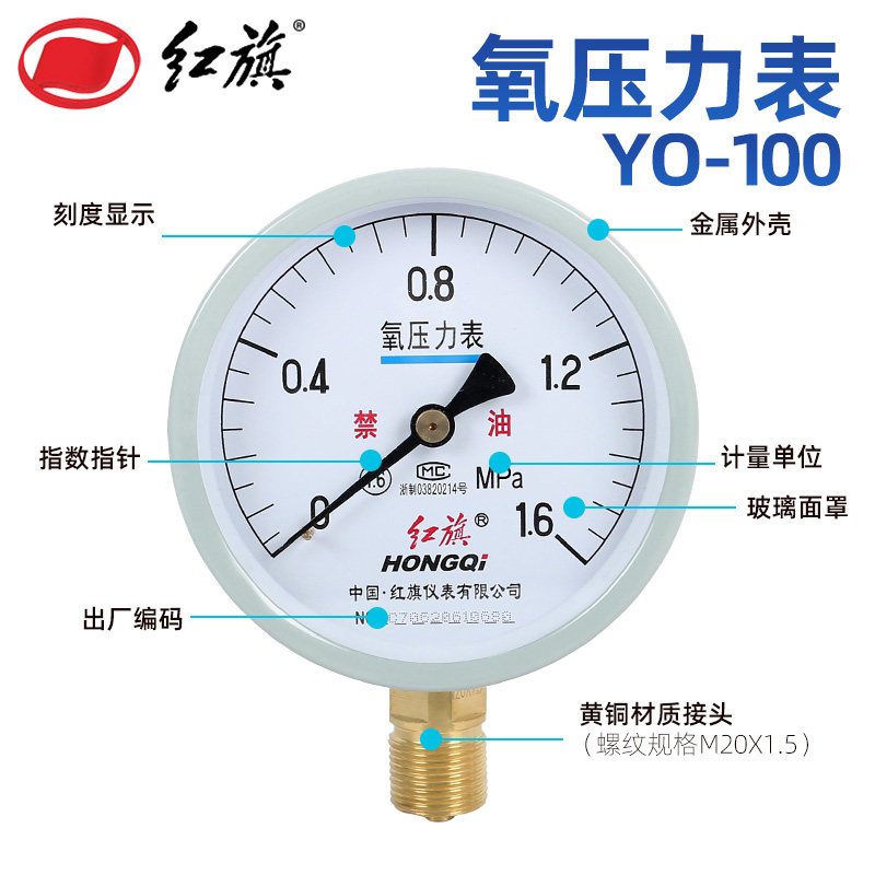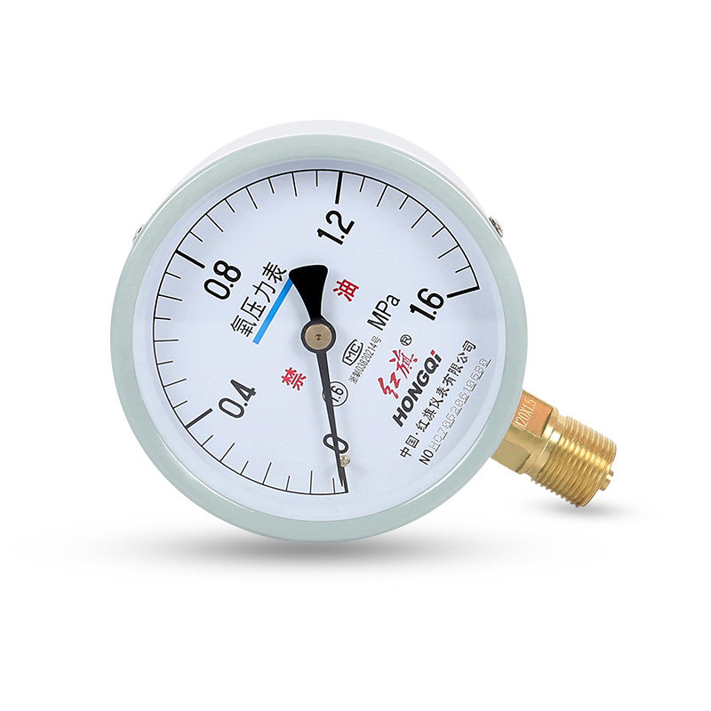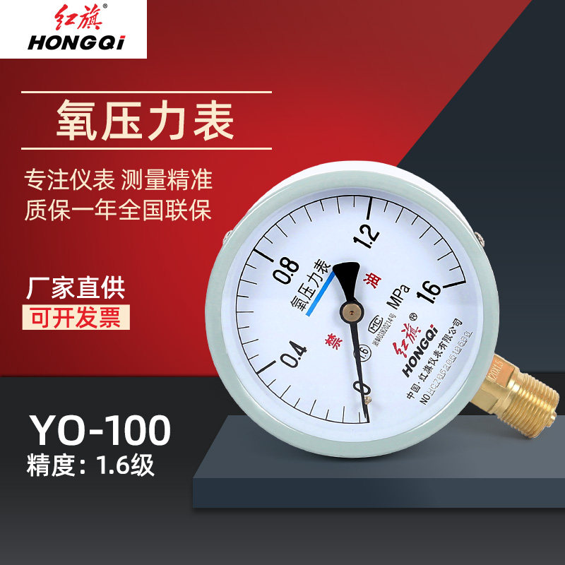 Oxygen pressure gauge YO-100 red flag oxygen Forbidden Oil Pressure Gauge oil Degreasing Pressure Gauge Oxygen Pressure Gauge-Taobao