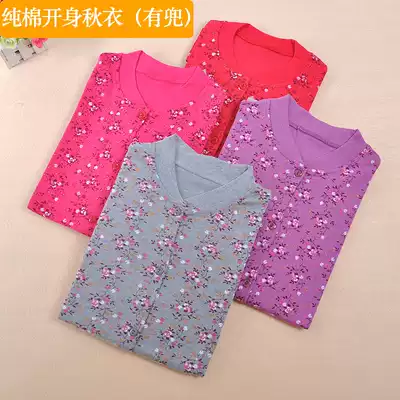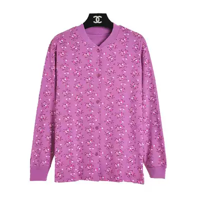 Pure cotton autumn clothes women's middle-aged and elderly open-body cotton sweater plus fat increase placket heating clothes large size single autumn clothes
