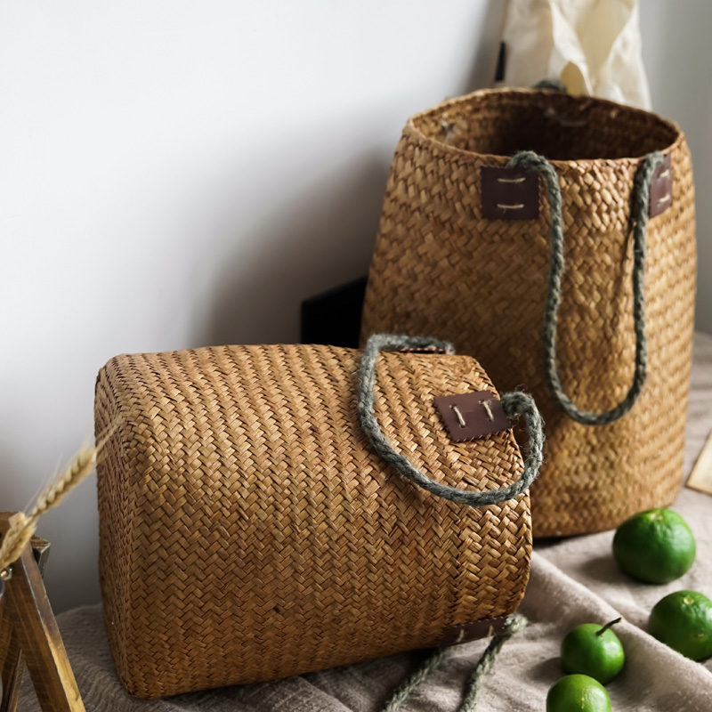Left bank McTian Ian handmade grass Woven Basket Woven Basket Hemp Rope Rattan basket Daily Contained Basket Debris Basket