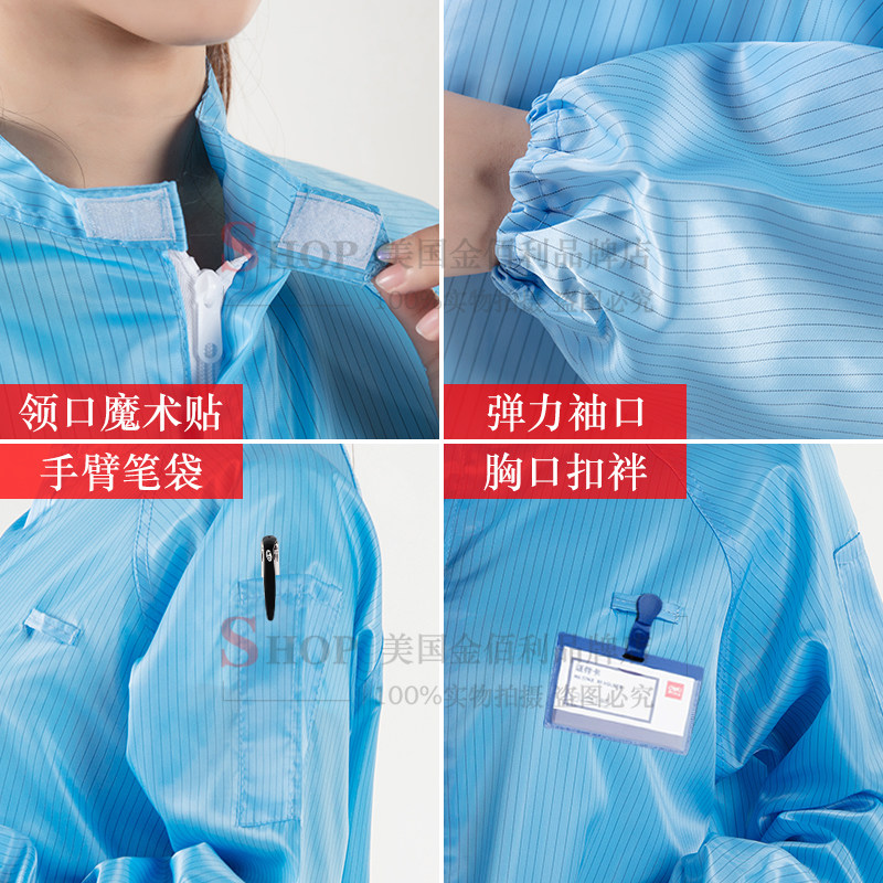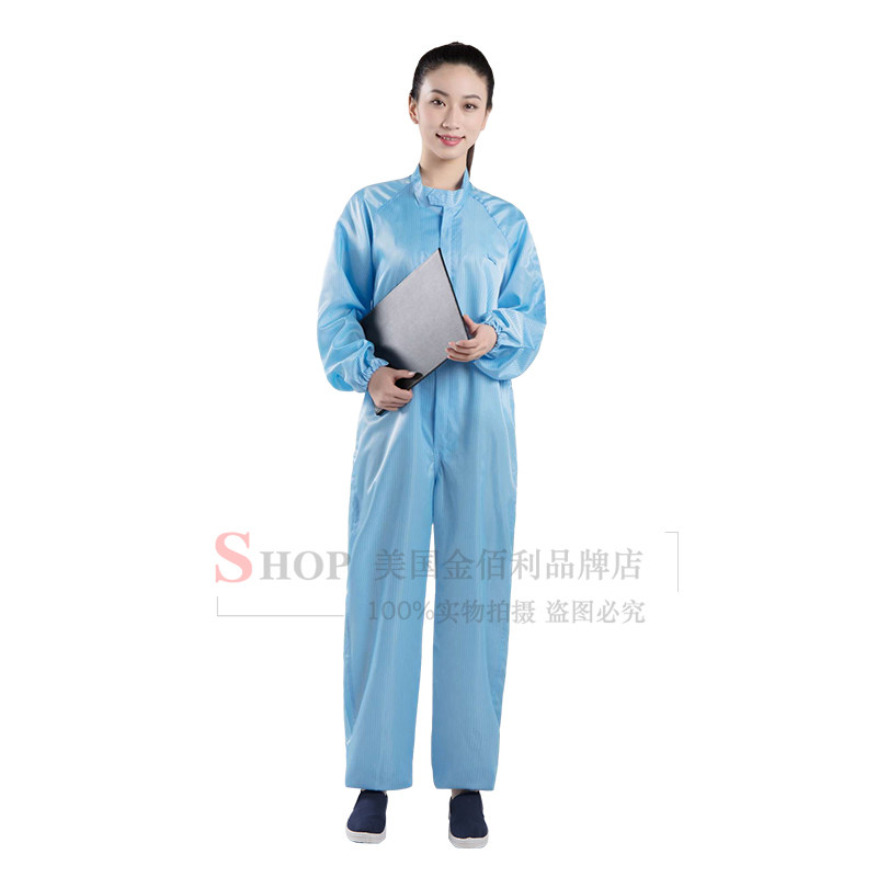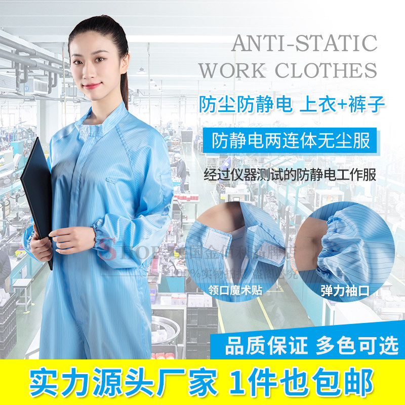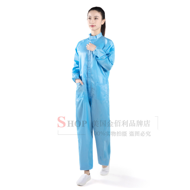 Anti-static capless two-piece suit blue dust-free suit without hood food protection one-piece suit spray-painted one-piece suit