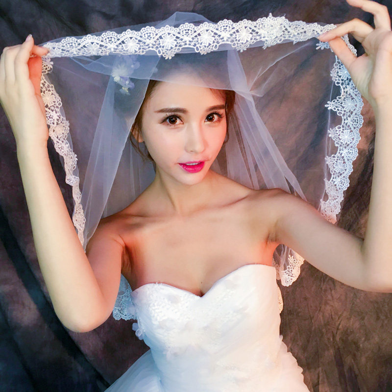 Bridal wedding dresses head yarn headwear supersenssen white knot wedding nemesis red photo retro new Korean-style short soft yarn