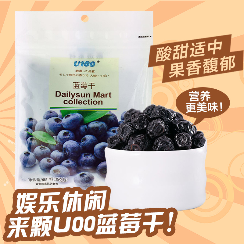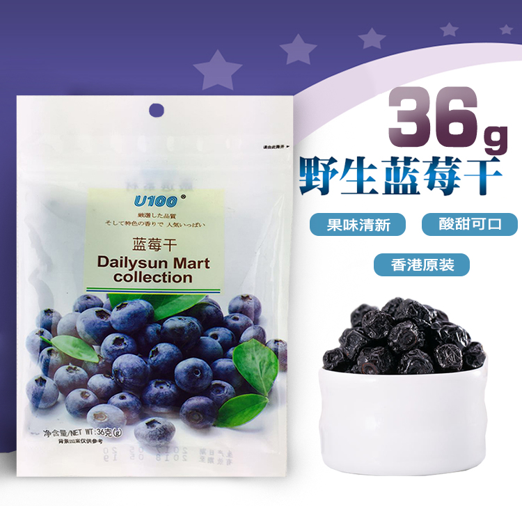 Hong Kong imported u100 brand blueberry dried candied fruit dried fruit leisure sweet and sour snacks snack 36g bag