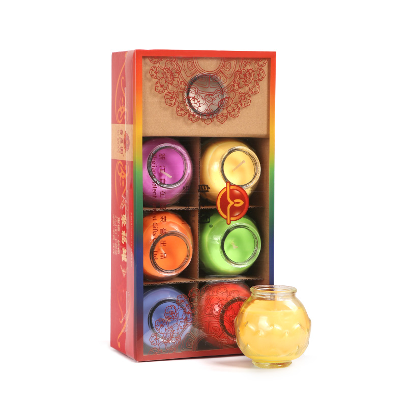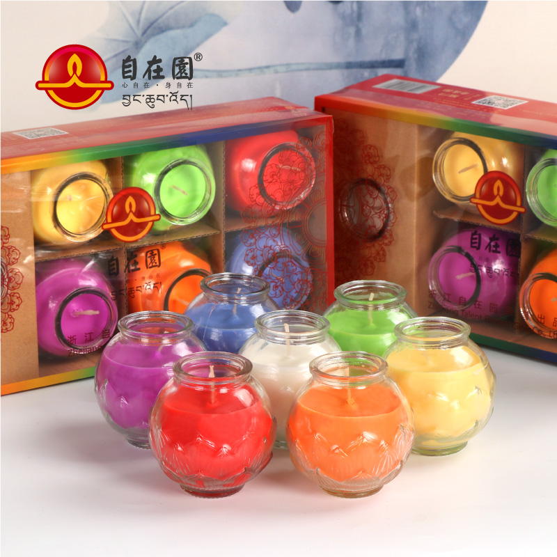 Zizai garden colorful ghee lamp 24 hours flat mouth lotus candle smokeless polyfu jar glass jar for Buddha for lamp