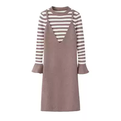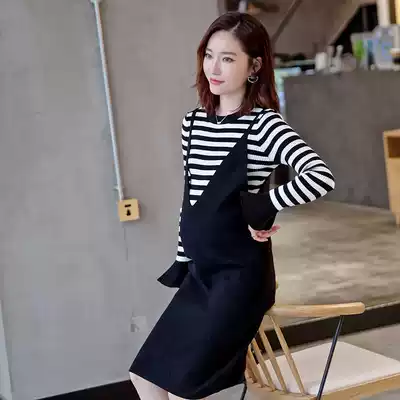 AMUM fashion maternity dress elegant khakis striped knit two-piece dress