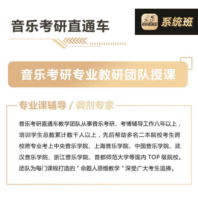 History of Western Music (Donation Model Examination) Chinese Music History (Donation Model Examination) Harmony Analysis (Donation Model Examination) Chinese and Western Music History (Donation Model Examination) Composition Analysis (Including Sonata Style, Gift Model Examination) Harmony and Composition + Chinese and Foreign Music History (Gift Model Examination Technology + History Theory (Each Chooses One Gift Model Examination) Super Model Examination Adjustment Admission Class Harmony and Composition (Including Sonata Model Examination) Art Student Examination English 1 (Baofen Class) Art Student Examination Research English 2 (Baofen Class) Art Student Examination Research Politics (Baofen Class) Art Student Examination Research English + Politics (Baofen Class) Art Student Examination English + Politics (Baofen Class)