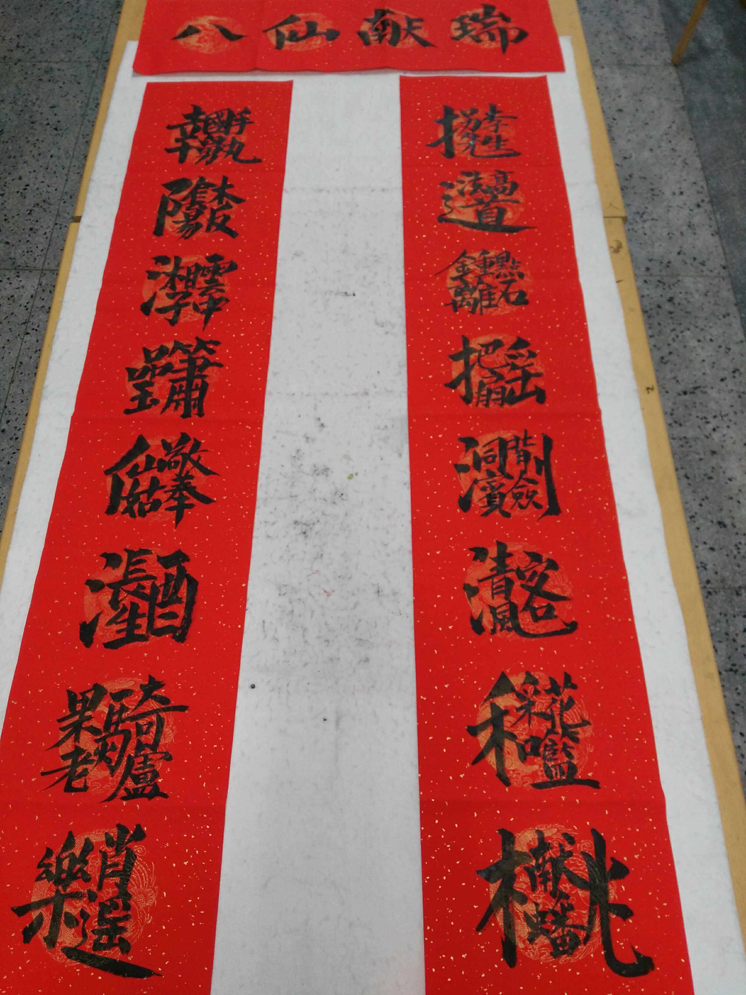 Handwritten Eight Immortals to Write a New Year's Books for People of Wuyunshan People's Books Law Wannian and Calligraphy The Colorful Sketch Dragon and Feng Xuan Paper Chunlian