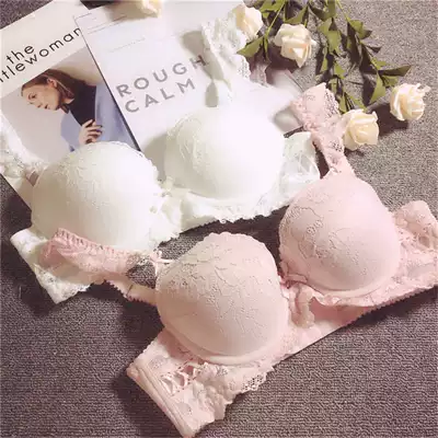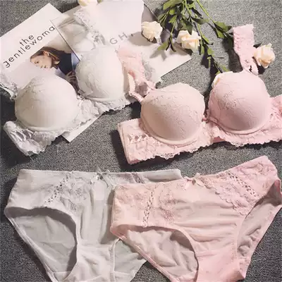 Sweet autumn and winter new embroidered flowers gather underwear lace adjustment small chest adjustment type double breast underwear set