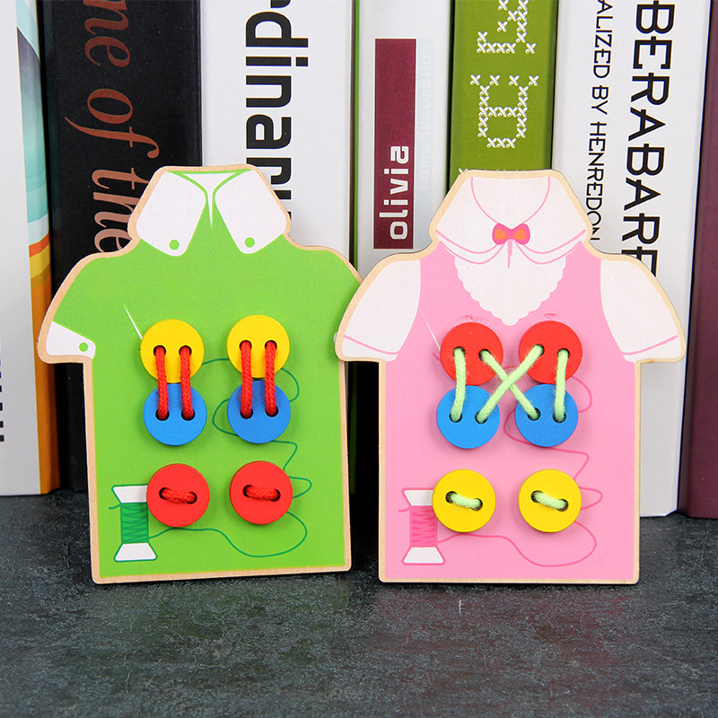 Baby sewing button clothes toys Wooden children's puzzle early teaching hand - dressed plate parent - child life teaching tools