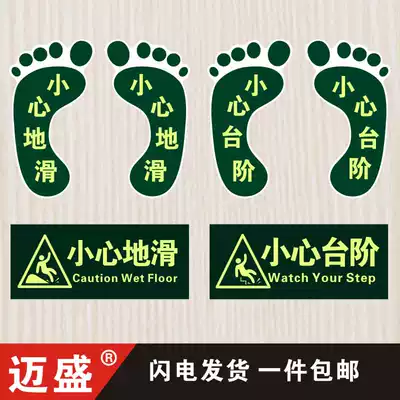 Fire safety exit floor stickers, careful steps, careful sliding signs, luminous signs, luminous wall stickers, identification cards