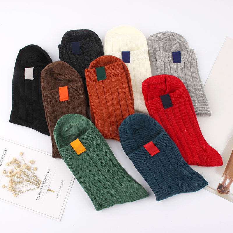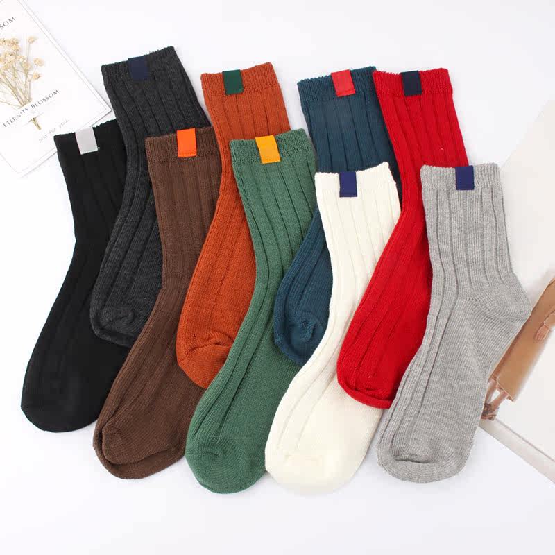 Korean Japanese college style label tide socks solid color basic cotton mid-tube women's socks sports socks bubble socks