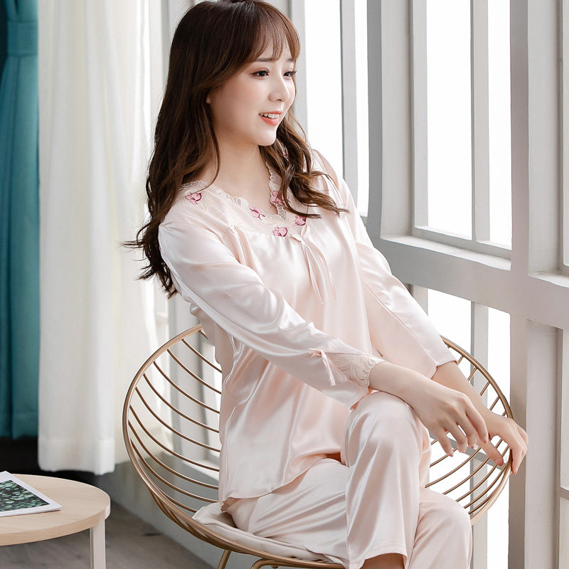 Pajamas women Xia Bingsi spring and autumn long-sleeved Korean version of the fresh, sweet and cute can wear sexy silk home clothes women