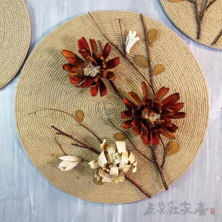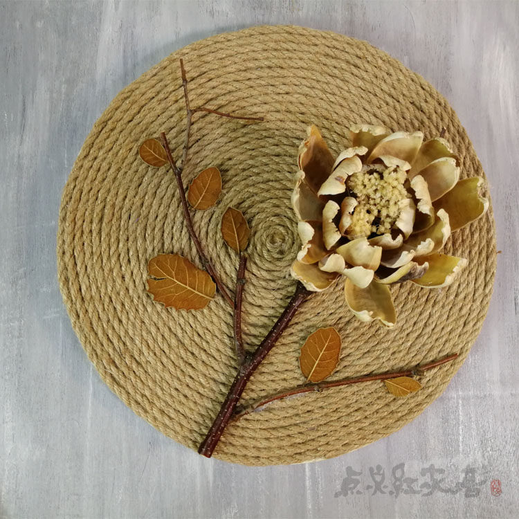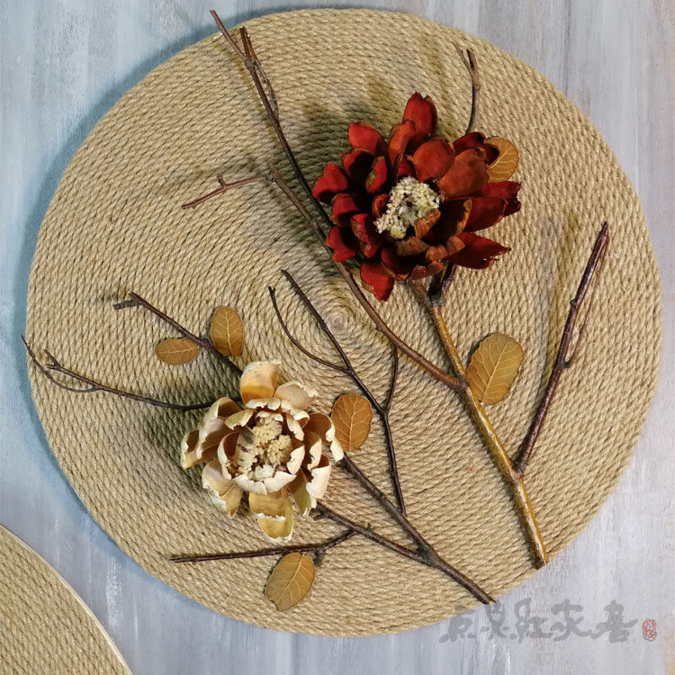Flower good moon round hemp rope round handmade decorative painting Southeast Asian home wall decoration pendant dry flower nostalgic porch wall decoration
