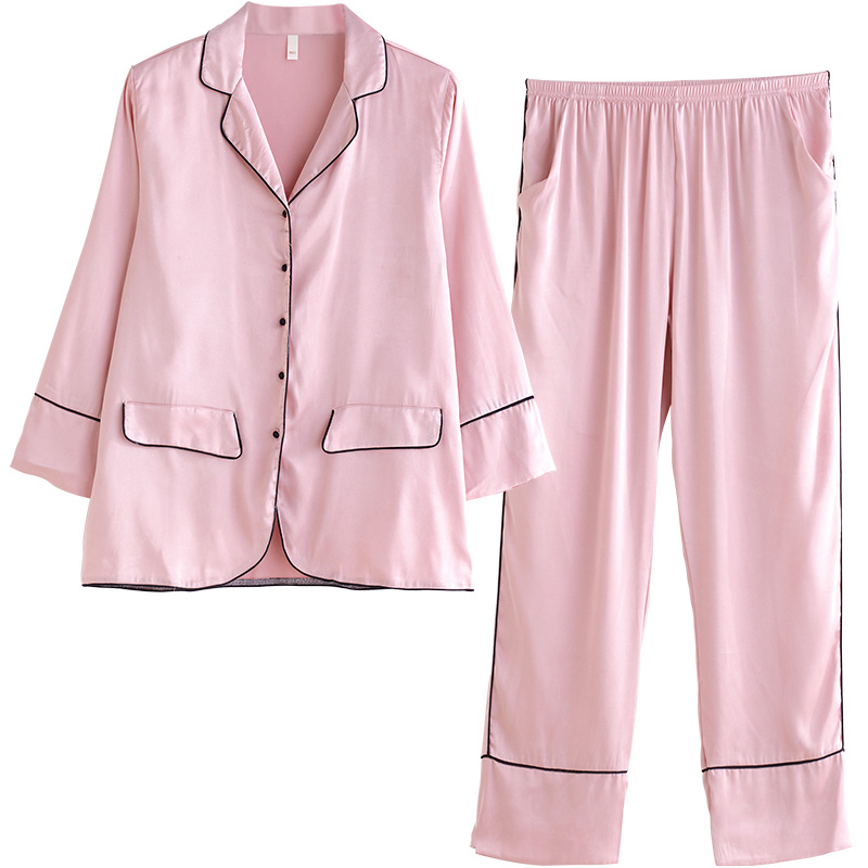 Silk couple's pajamas fall ice wire long sleeve suit female spring and autumn fat mm 200 pounds of loose men's home suit