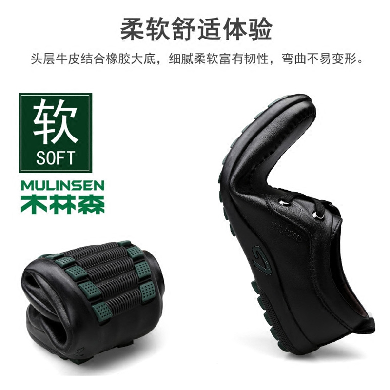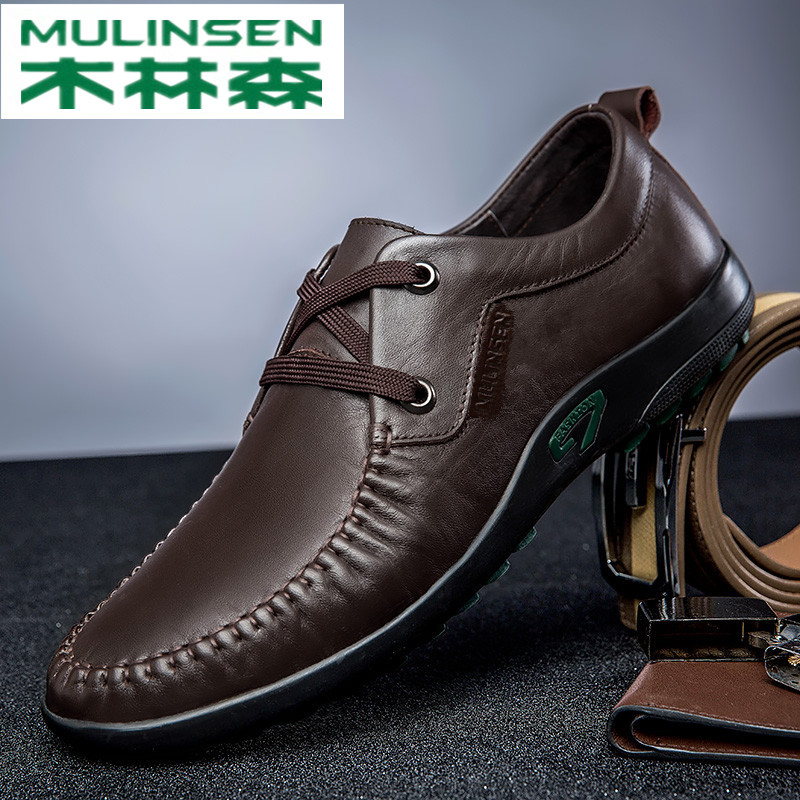 Mulinsen men's casual leather shoes men's leather handmade leather shoes dad shoes autumn breathable cowhide men's shoes soft sole