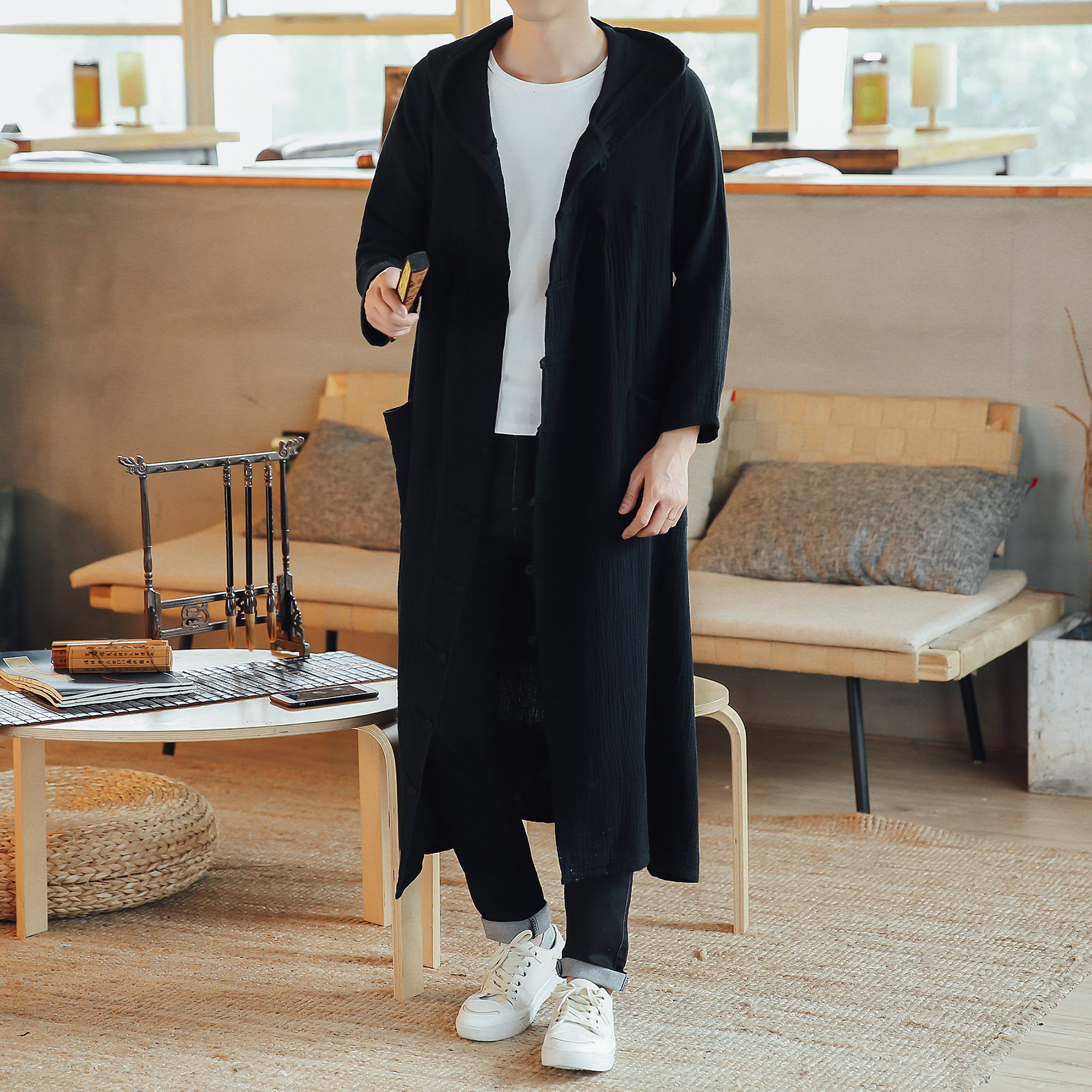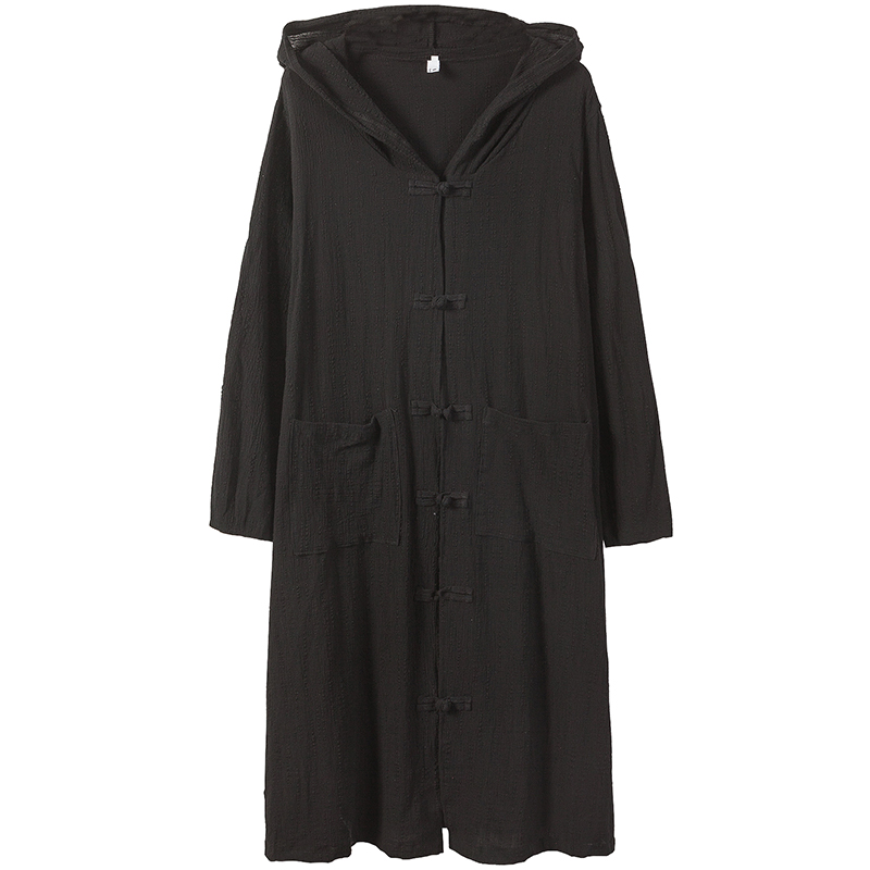Autumn thin hooded mid-long version over-the-knee trench coat men's Chinese wind cloak cape extra long coat large size men's clothing