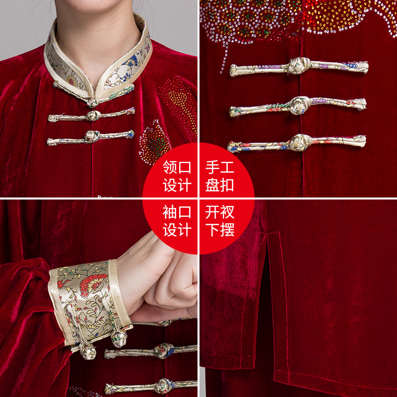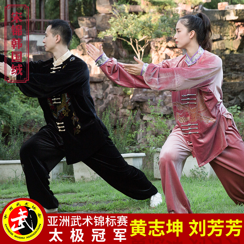 Ancient rhyming Chinese gold velvet Tai Chi suit women's autumn and winter style Thickened Martial Arts Taijiquan to serve men's warm China Wind-Taobao
