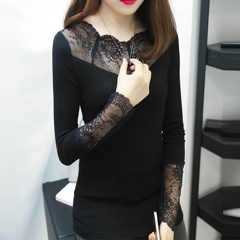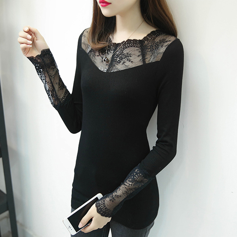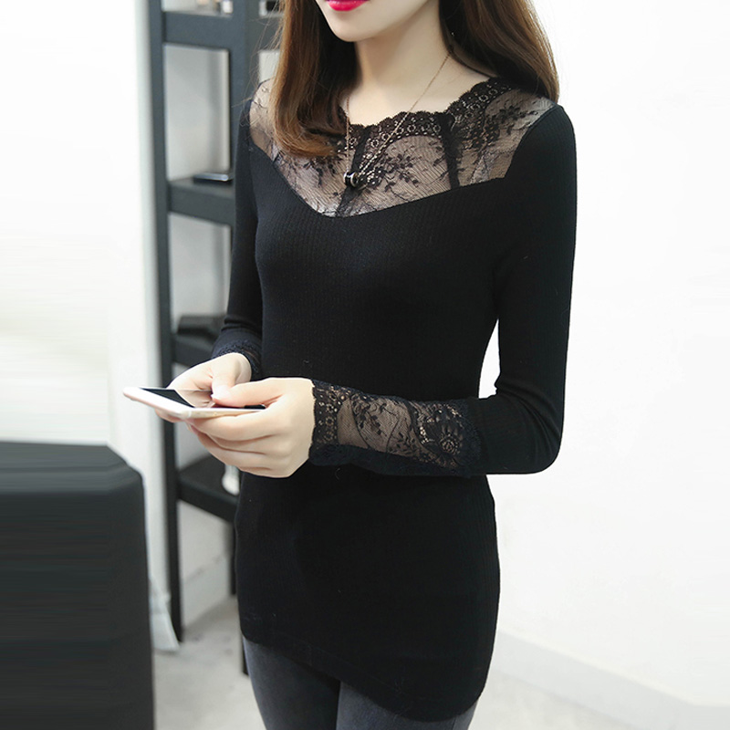 Autumn and winter Korean version Temperament Undershirt Jacket Head Long Sleeve Mesh Yarn T-shirt Tight Fit Blouse blouse Thin Jersey