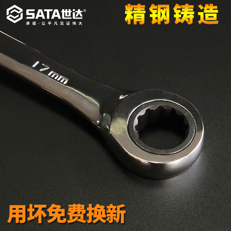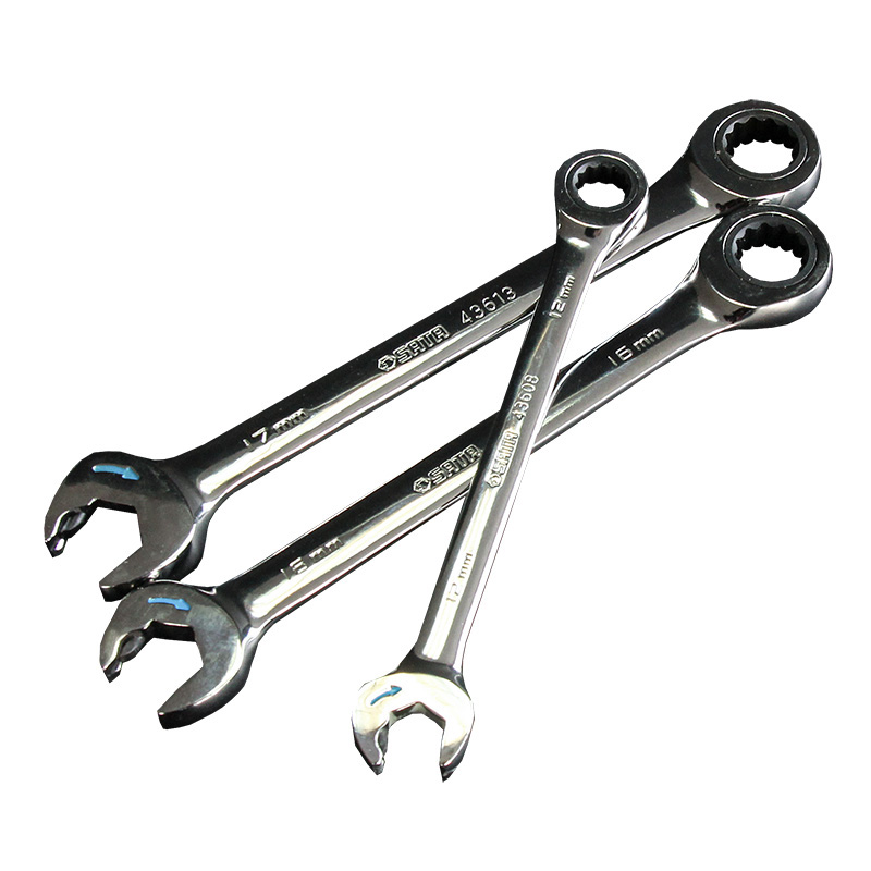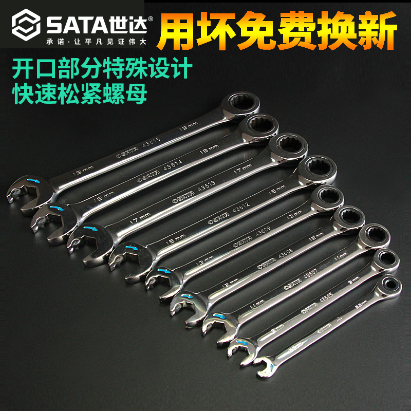 Shida tools fully polished opening fast wrench plum blossom opening quick ratchet auto repair wrench 43601-43619