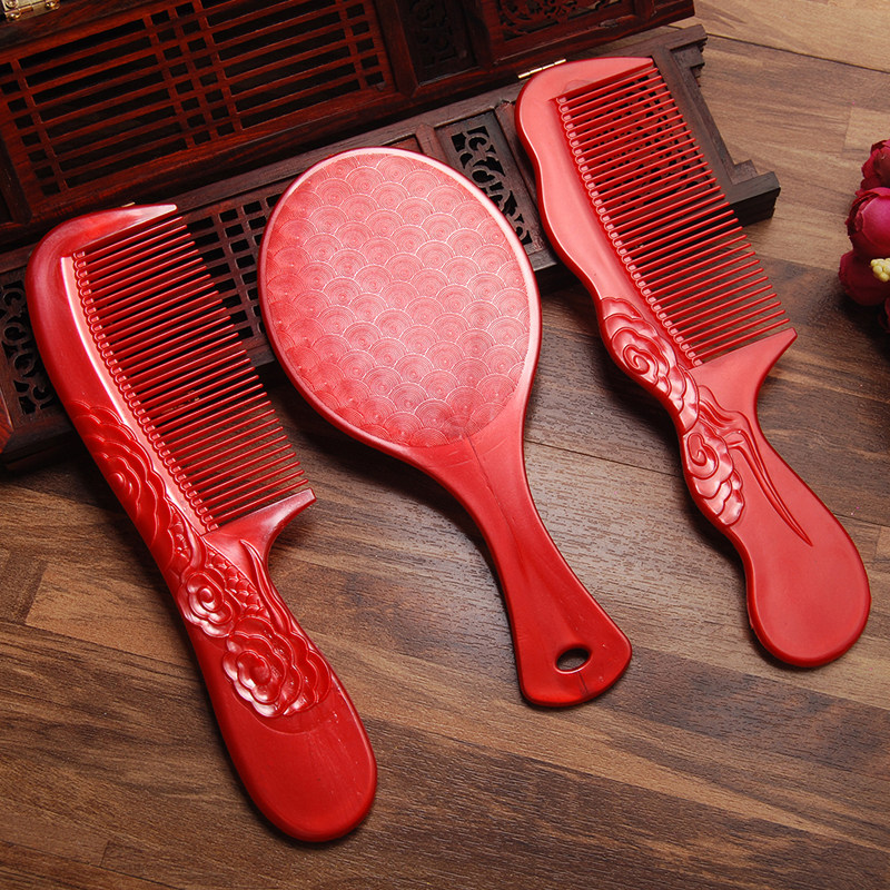 Mirror comb set Plastic comb pair (pattern random delivery) Heart-shaped wooden comb pair with handle A pair of wooden combs without handle A pair of wooden combs with handle